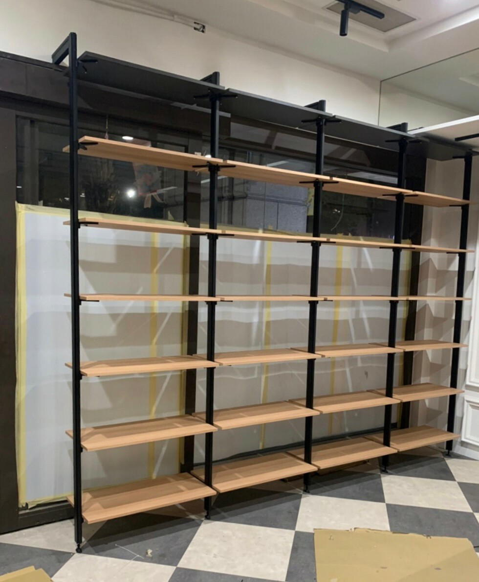 規畫店面層架多元化展示 可依需求結合多項異材質 表現獨特店面風格