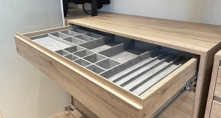 讓更衣間設計更加完整,康萊提供 專屬客製化裁切服務, 可依據不同空間需求,打造專屬高度與靈活配件組合,實現 兼具美學與獨特性的收納體驗。