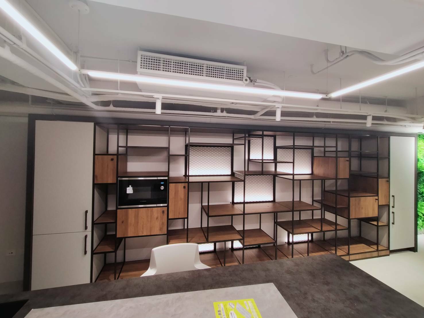 融合收納與綠意的空間模組,適合用於開放辦公區、會議間或入口接待區。上層可放置植栽,下層可用作儲物或展示架,兼顧美感與實用性,營造舒壓與活力兼具的工作氛圍。