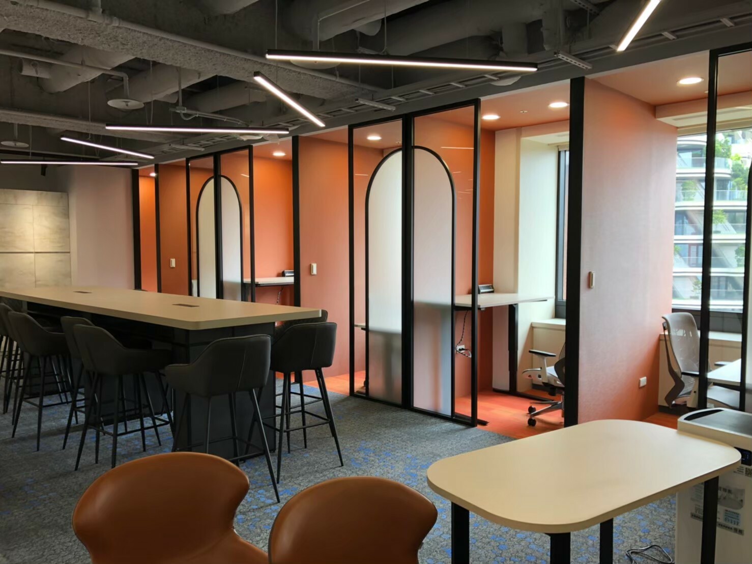 多彩度的屏風顏色選擇,提供空間活潑有活力的氛圍,提供場所促進員工之間的互動和合作,如共享工作空間、開放式辦公區域和多功能會議室。