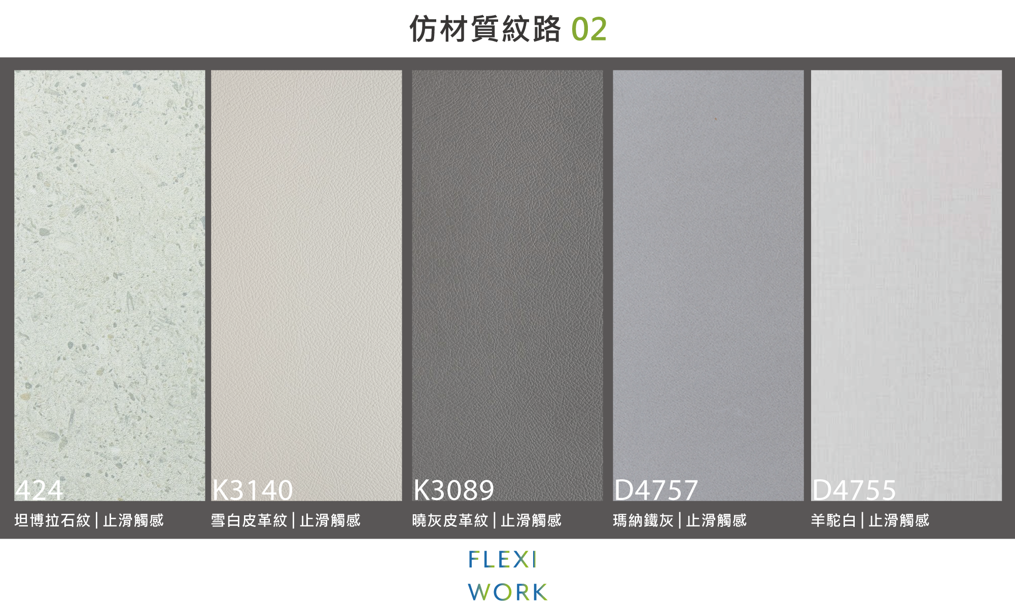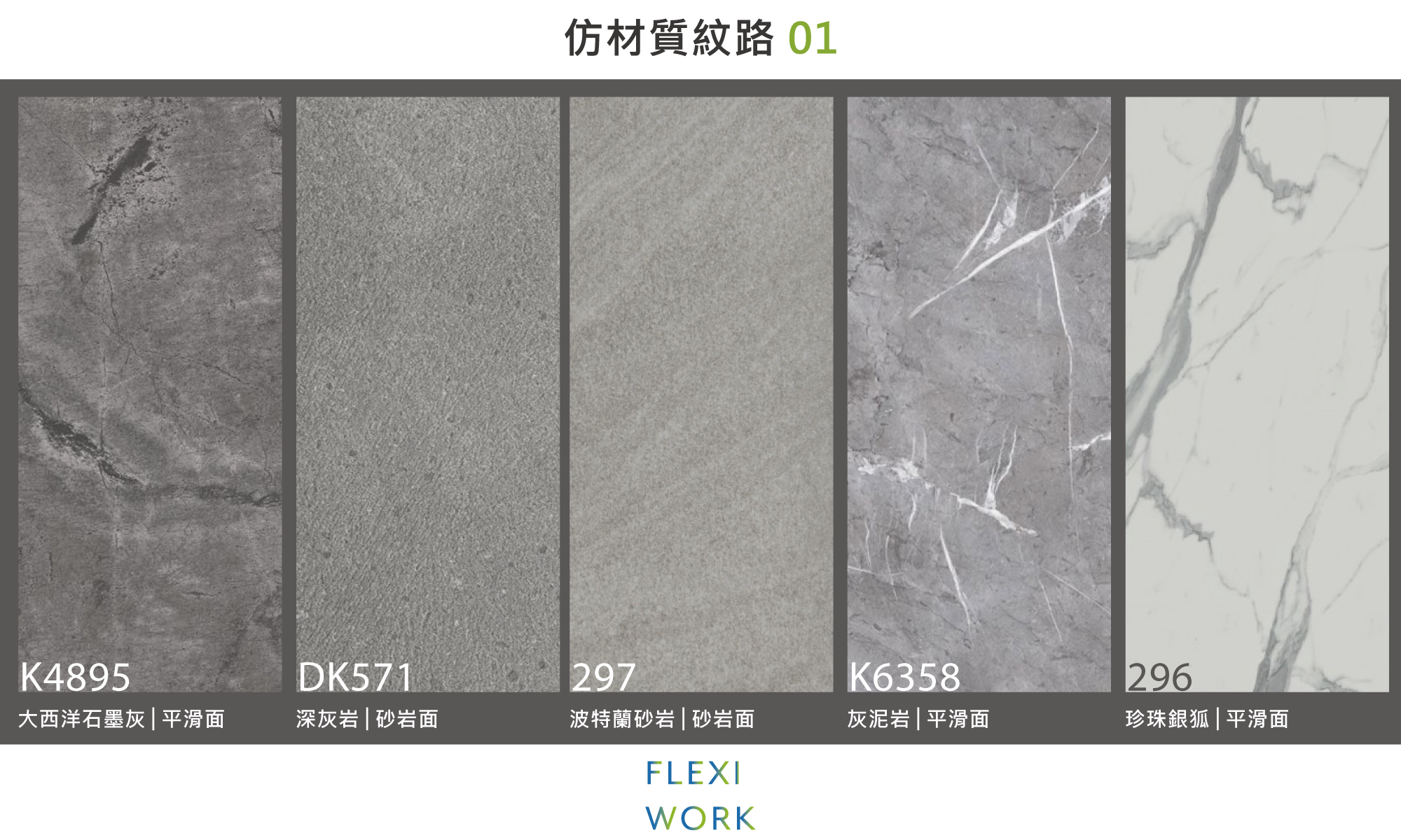 仿材質:石材、皮革及水泥